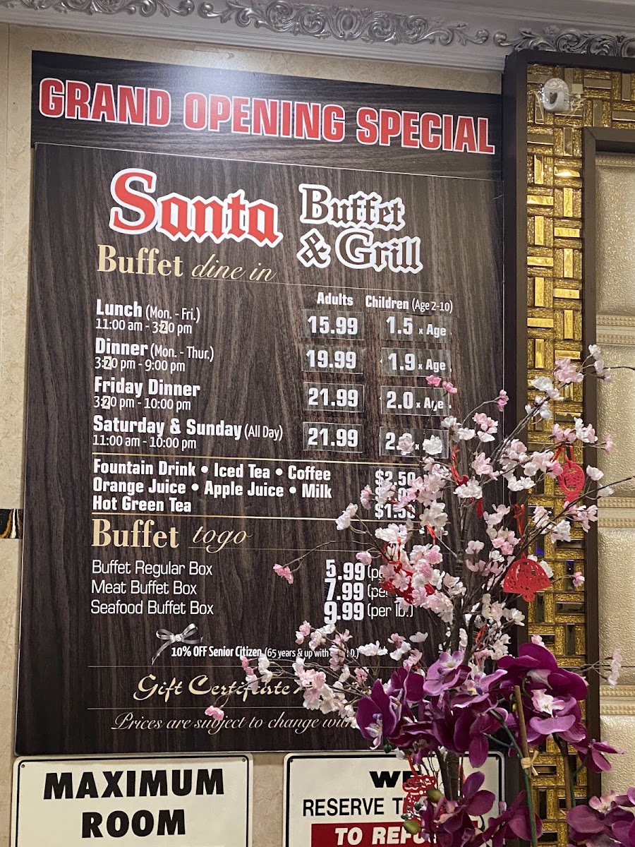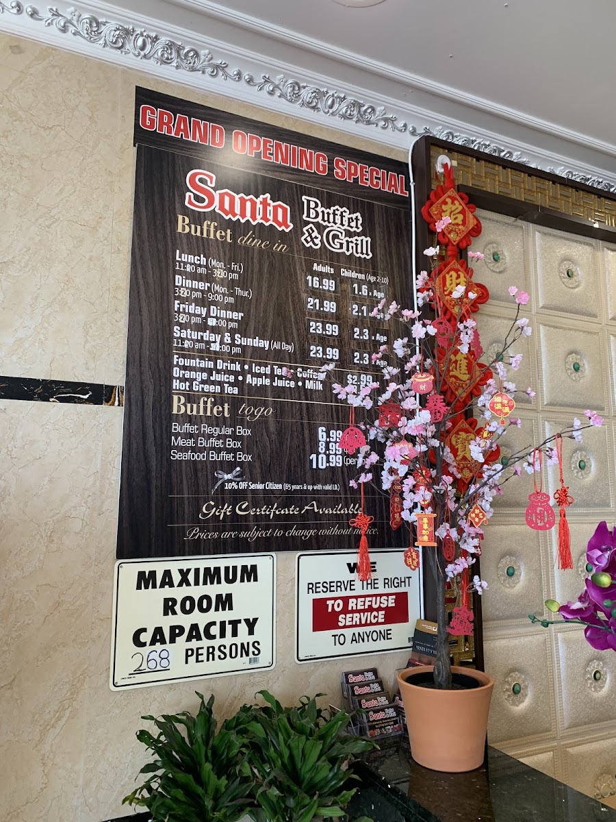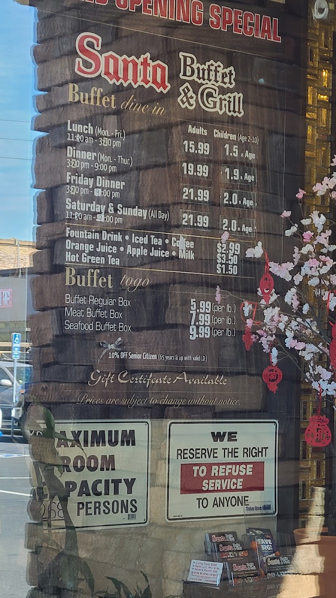 Welcome to Santa Buffet & Grill, nestled in the heart of Santa Ana, California. This buffet restaurant offers an exceptional culinary experience with a menu that is both diverse and affordable. Priced at just US$5.99 per lb. for the regular buffet, diners can explore a myriad of options, including a Meat Buffet Box for US$7.99 and a delectable Seafood Buffet Box for US$9.99.
